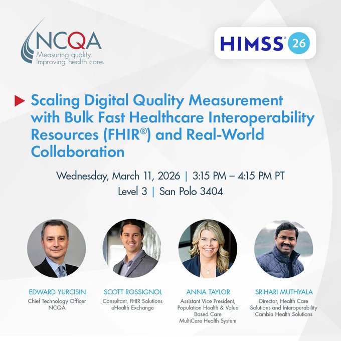 @NCQA Healthcare quality is accelerating, and digital innovation is leading the way. Join us at HIMSS as Edward Yurcisin explores how Bulk FHIR® is scaling digital quality measurement for a more connected, real time future. Let’s connect at HIMSbit.ly/4u9CAdIHpRD